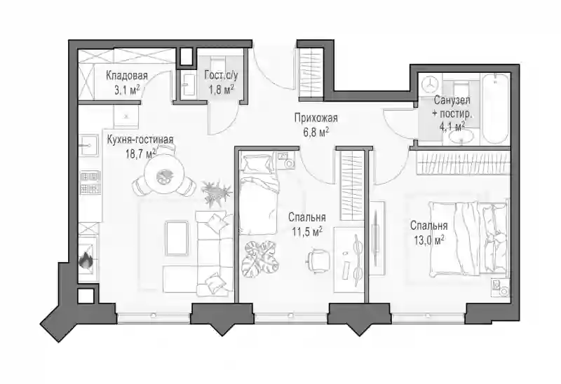 34 609 400 ₽3-к.квартира, 58.66 м², 10 эт.