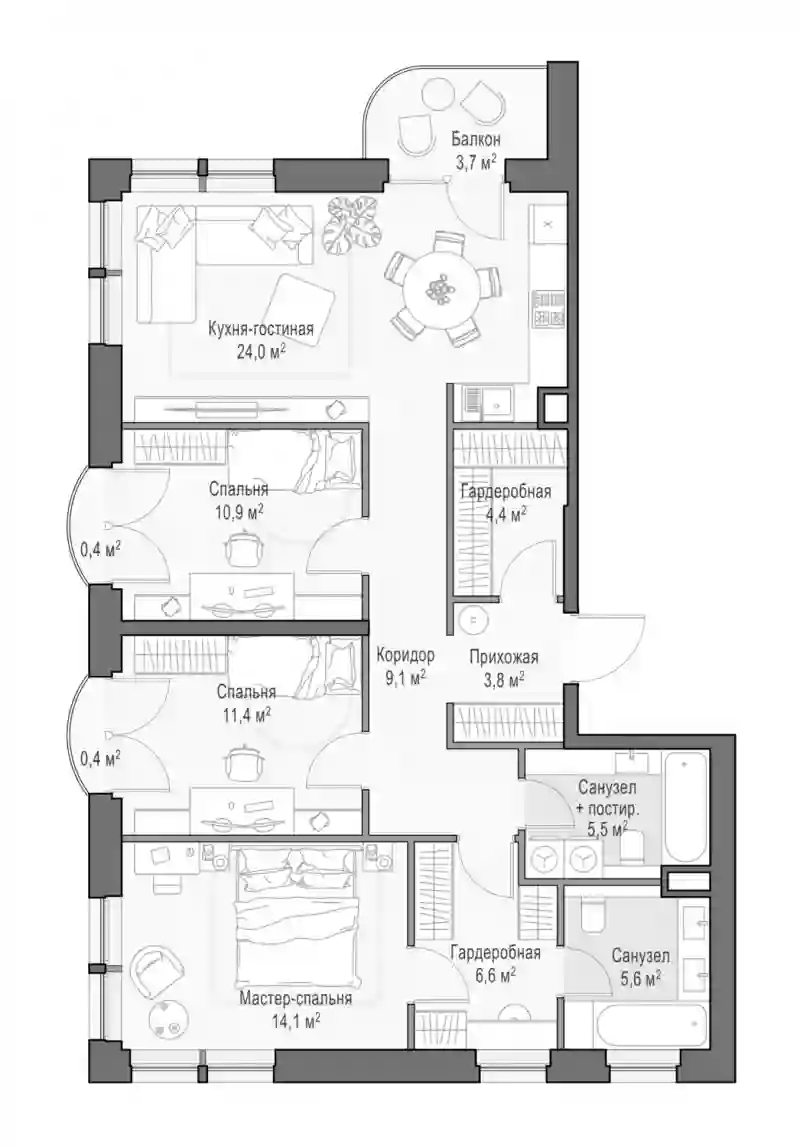 55 324 691 ₽4-к.квартира, 98.28 м², 7 эт.