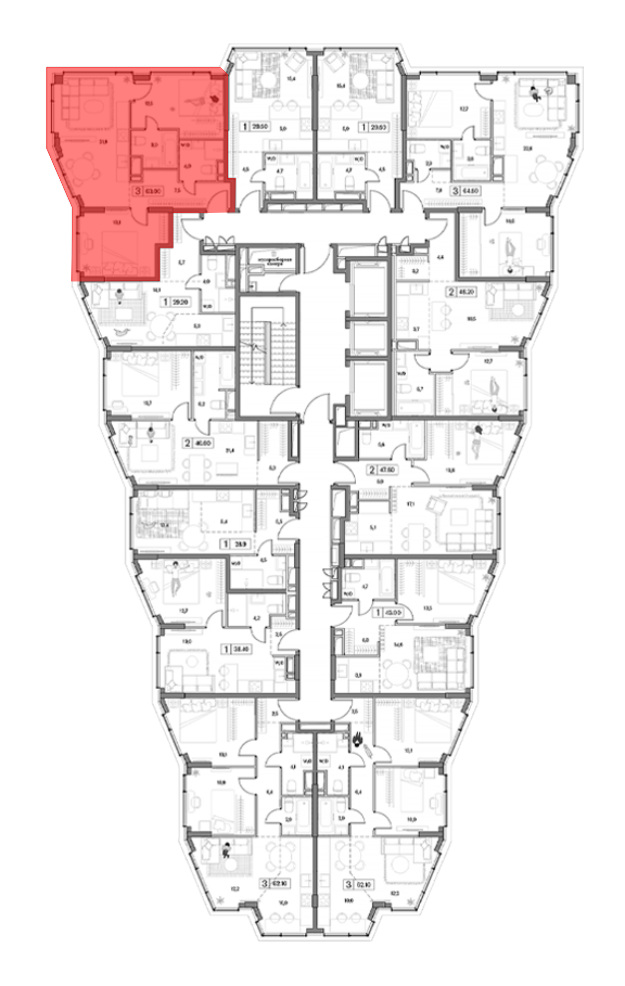 37 273 430 ₽3-к.квартира, 63 м², 9 эт.