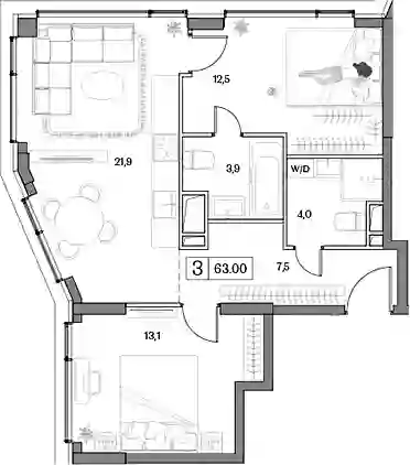 В жилом комплексе представлен широкий выбор планировочных решений: от уютных студий до просторных 4-х комнатных квартир европейского формата. Площадь квартир варьируется от 28 до 88 квадратных метров. В квартирах предусмотрены ниши для шкафов и гардеробных, а также кухни-гостиные и мастер-спальни с отдельной гардеробной комнатой и санузлом. На верхних этажах находятся видовые пентхаусы площадью от 121 до 297 кв. метров с собственными террасами. Квартиры сдаются без отделки и внутренних перегородок. В каждой квартире высокие потолки и панорамное остекление. Из 95% квартир открывается вид на Москву-реку.