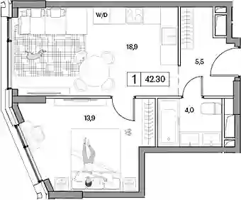 В жилом комплексе представлен широкий выбор планировочных решений: от уютных студий до просторных 4-х комнатных квартир европейского формата. Площадь квартир варьируется от 28 до 88 квадратных метров. В квартирах предусмотрены ниши для шкафов и гардеробных, а также кухни-гостиные и мастер-спальни с отдельной гардеробной комнатой и санузлом. На верхних этажах находятся видовые пентхаусы площадью от 121 до 297 кв. метров с собственными террасами. Квартиры сдаются без отделки и внутренних перегородок. В каждой квартире высокие потолки и панорамное остекление. Из 95% квартир открывается вид на Москву-реку.