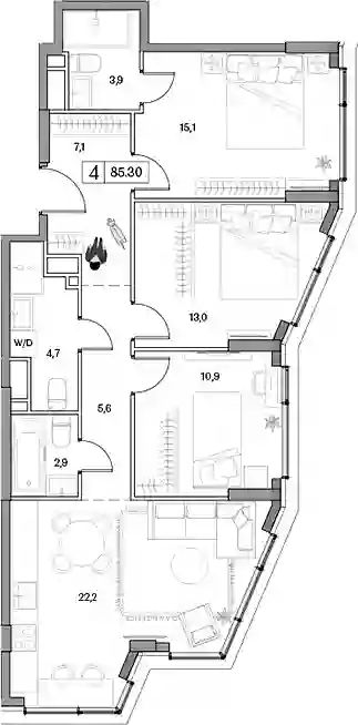 4-к.квартира, 85.3 м², 13 эт. в ЖК Dream RIVA Корпус ARIA
