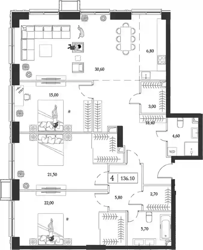 4-к.квартира, 136.1 м², 18 эт. в ЖК Dream Towers Корпус 2