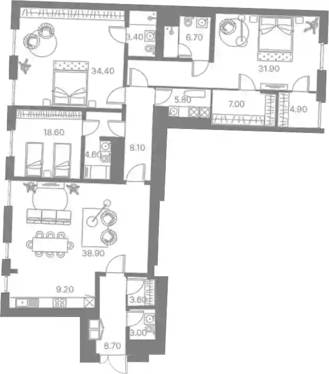 4-к.квартира, 188.8 м², 5 эт. в ЖК DUO Корпус NUOVO