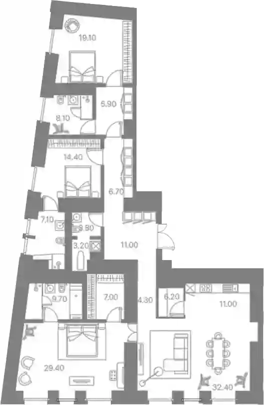 4-к.квартира, 179.3 м², 4 эт. в ЖК DUO Корпус STORICO
