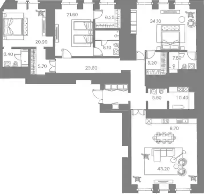 4-к.квартира, 216.8 м², 3 эт. в ЖК DUO Корпус STORICO