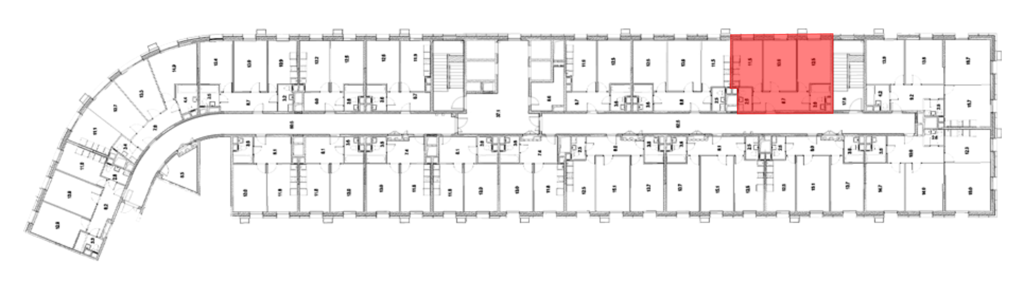 В проекте представлены студии и апартаменты с 1–3 комнатами площадью от 31,8 до 77 кв. м. Высота потолков варьируется от 2,87 до 3,02 метра. Установлены увеличенные оконные проемы, что делает помещения светлыми и визуально просторными. Квартиры передаются в формате без стен — с возможностью самостоятельного зонирования пространства по своему усмотрению. В некоторых планировках спроектированы гардеробные.