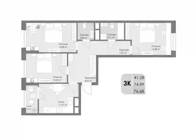 3-к.квартира, 74.99 м², 25 эт. в ЖК Дюна Корпус 3