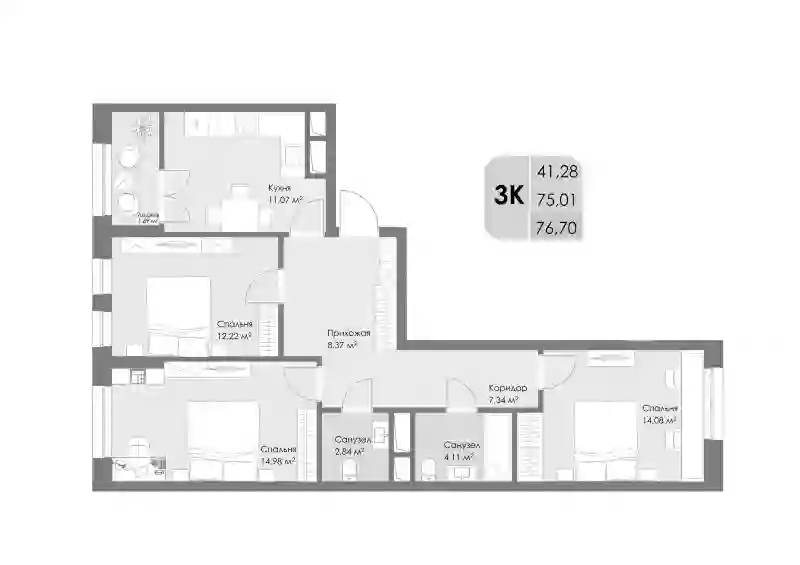 3-к.квартира, 75.01 м², 28 эт. в ЖК Дюна Корпус 3