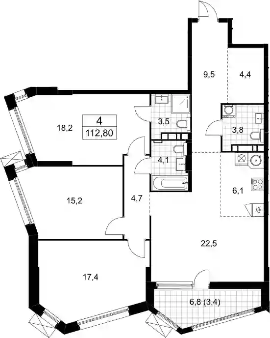 37 984 272 ₽4-к.квартира, 109.4 м², 18 эт.