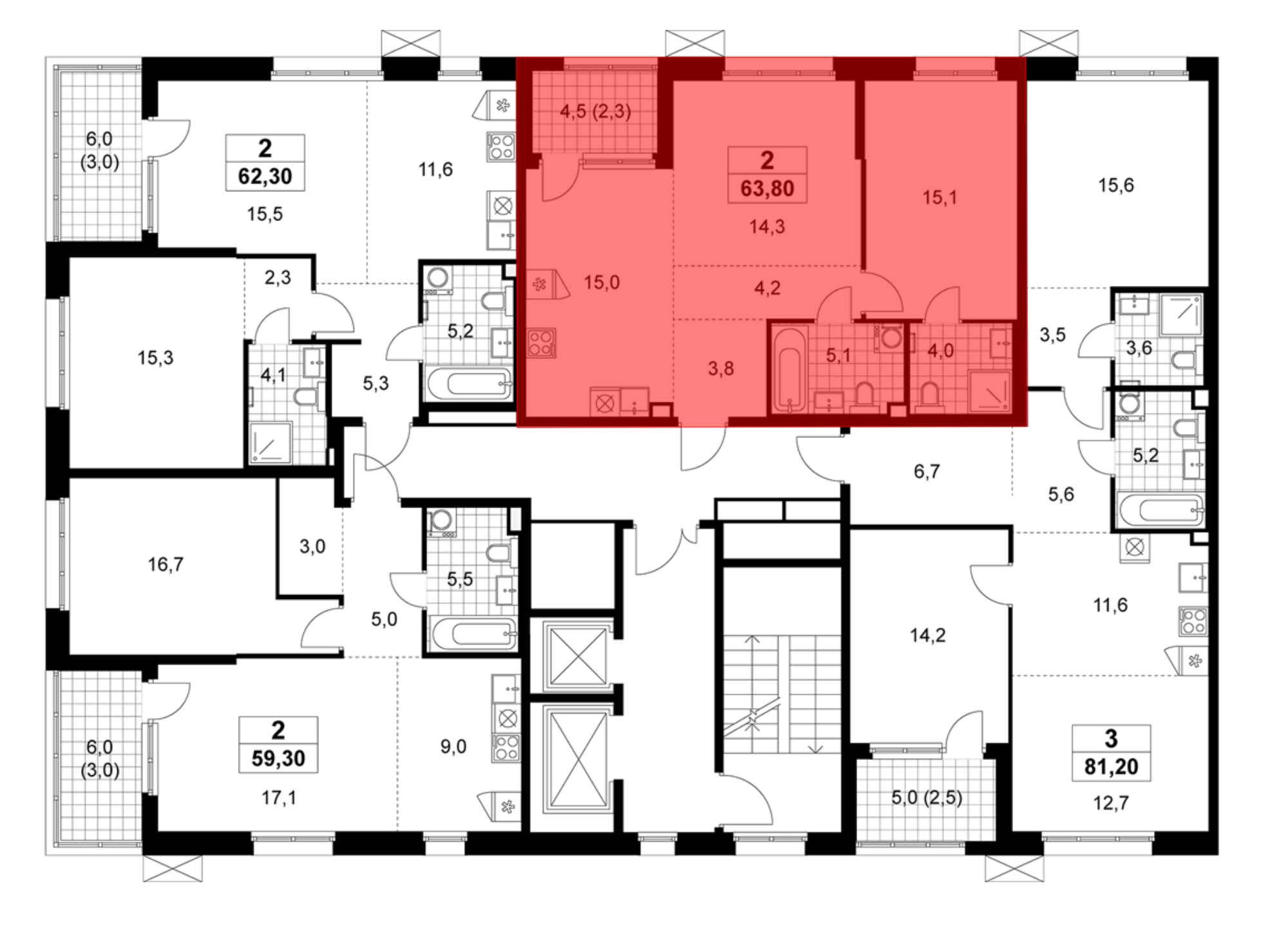 30 819 712 ₽3-к.квартира, 80.2 м², 5 эт.