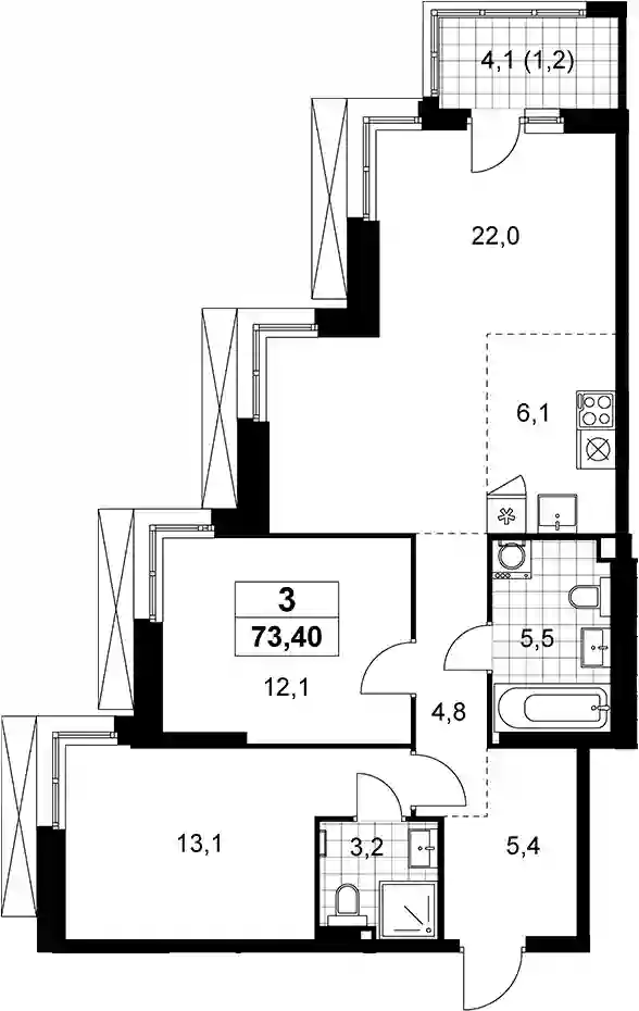 В проекте представлено множество планировочных решений — от студий до просторных 4х-комнатных квартир как классических так и европланировок с мастер-спальнями и кладовыми. Все лоты сдаются с базовой отделкой и возможностью дозаказа чистовой, высотой потолков 2,99 метра и увеличенными окнами.