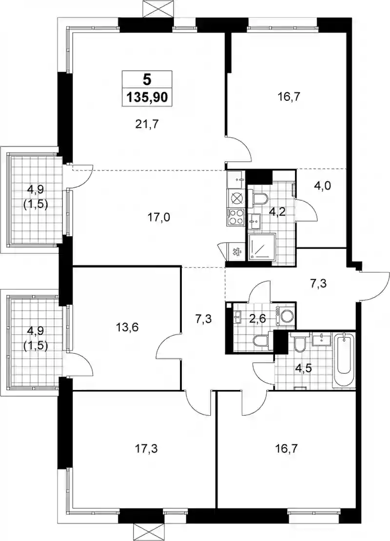 48 654 918 ₽5+к.квартира, 132.9 м², 4 эт.