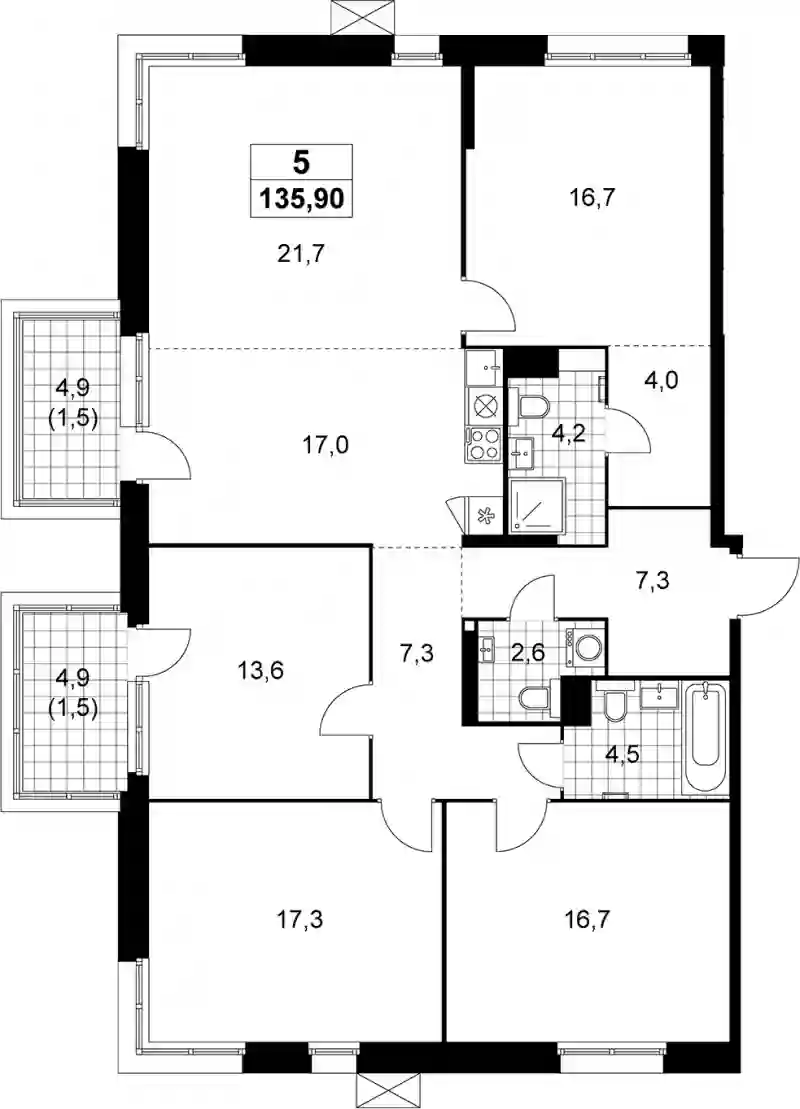 49 269 186 ₽5+к.квартира, 132.9 м², 8 эт.