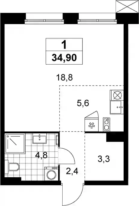 14 437 560 ₽1-к.квартира, 33.1 м², 18 эт.