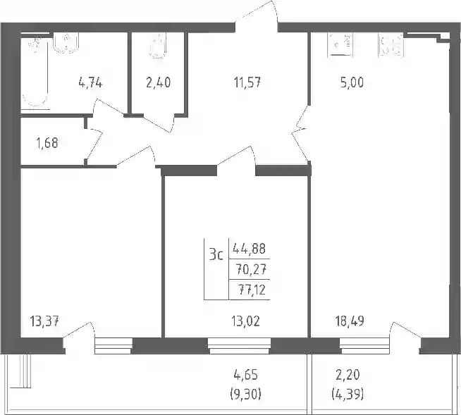 В проекте представлено множество планировочных решений — от студий до просторных 4х-комнатных квартир. Лоты сдаются с чистовой отделкой, увеличенными окнами с угловым остеклением, высотой потолков 3 метра.