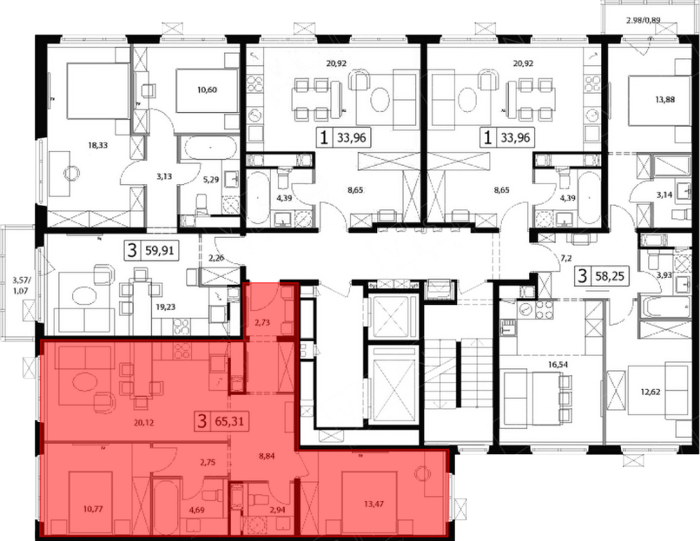 13 479 737 ₽3-к.квартира, 61.2 м², 13 эт.