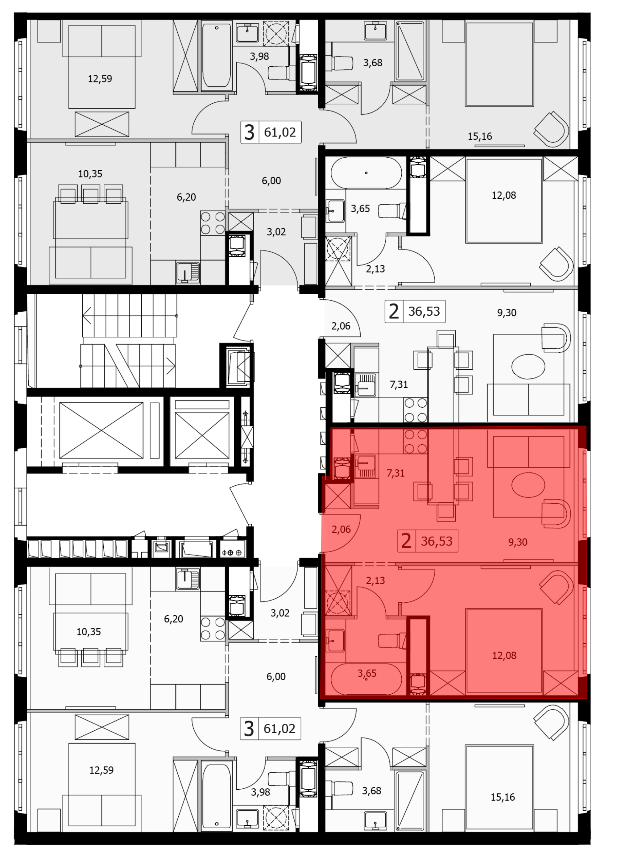 Квартиры в ЖК представлены классическими планировками от студий до трёхкомнатных. Есть возможность выбрать квартиру без отделки, с подчистовой и чистовой отделкой.