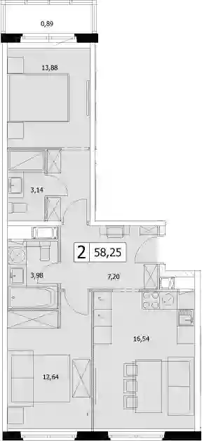 3-к.квартира, 57.36 м², 17 эт. в ЖК Эко Видное 2.0 Корпус 4 Нестеров