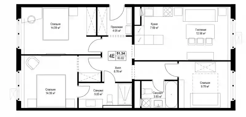 Планировочные решения включают как классические форматы, так и европланировки. Квартиры сдаются без отделки, с потолками высотой 3,1 метра и увеличенной площадью остекления. В некоторых квартирах предусмотрены просторные террасы.