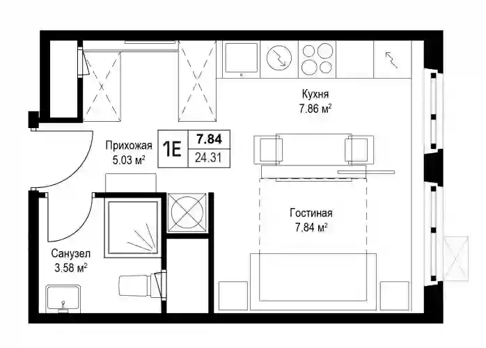 5 258 763 ₽Студия, 24.3 м², 24 эт.