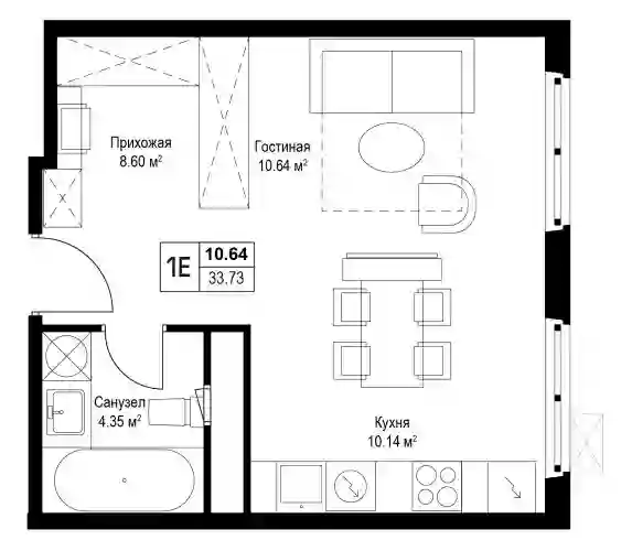 Студия, 33.73 м², 2 эт. в ЖК Эко Видное 2.0 Корпус 4 Нестеров