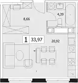 В ЖК «Symphony 34» предусмотрен широкий выбор планировочных решений — от студий до четырехкомнатных квартир и пентхаусов с возможностью объединения. Все квартиры отличаются увеличенной площадью остекления. Высота панорамных окон - от 2 метров. Квартиры сдаются с подчистовой отделкой и высотой потолков от 3 до 4.7 метров.