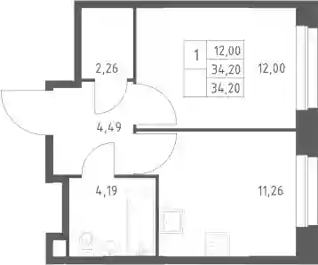 11 284 541 ₽1-к.квартира, 34.06 м², 7 эт.