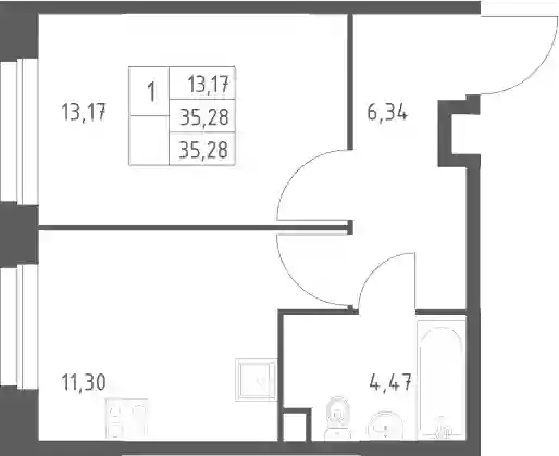 1-к.квартира, 35.28 м², 11 эт. в ЖК ЭкоБунино Корпус 13