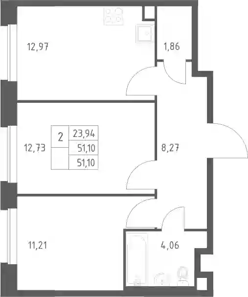 14 018 424 ₽2-к.квартира, 51.26 м², 15 эт.