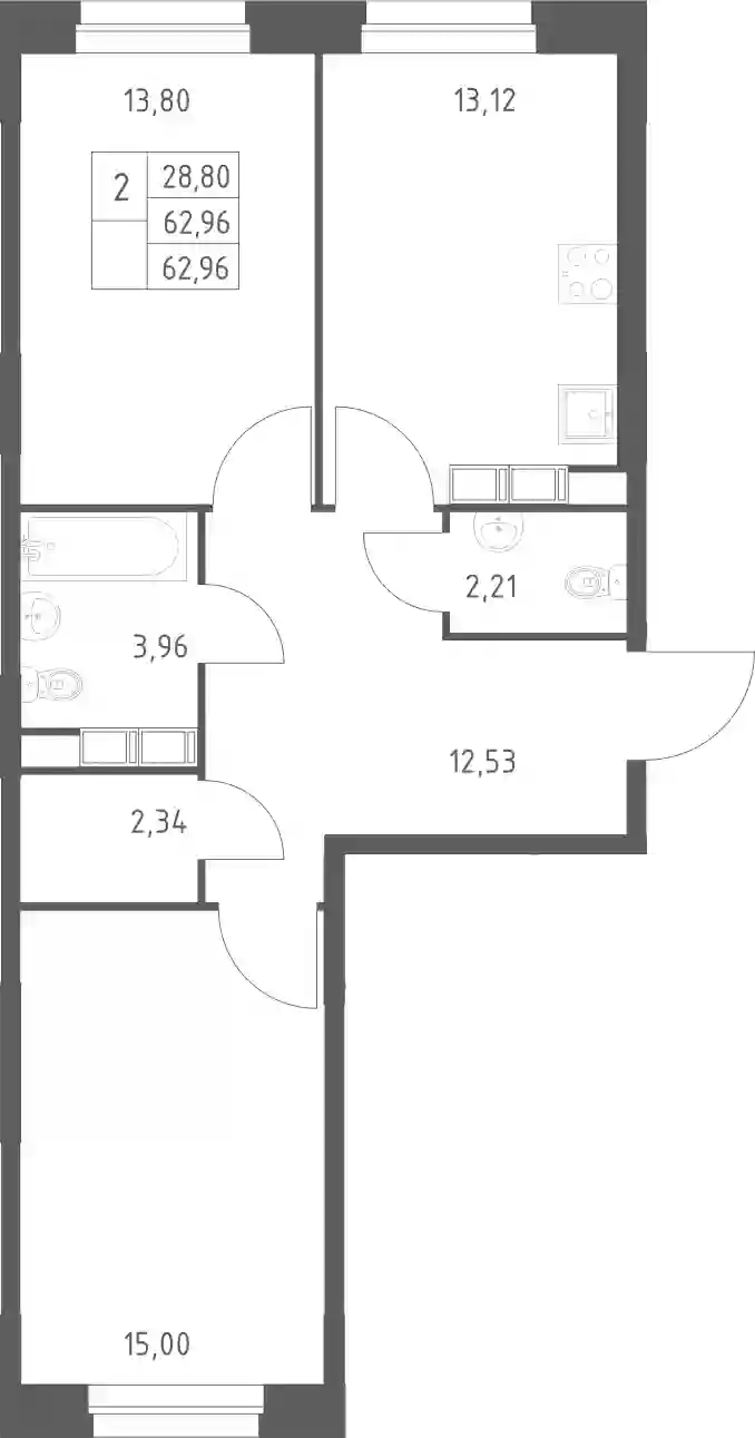 2-к.квартира, 62.96 м², 4 эт. в ЖК ЭкоБунино Корпус 13