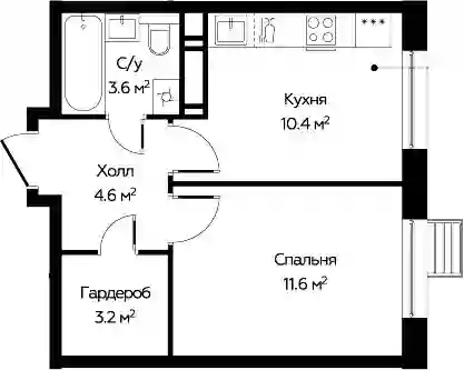 11 351 516 ₽1-к.квартира, 33.9 м², 4 эт.