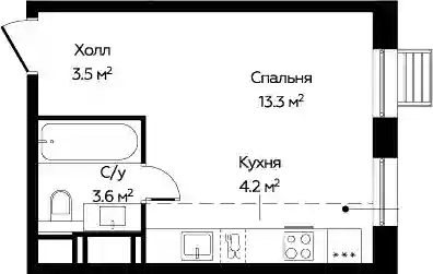 Студия, 24.6 м², 17 эт. в ЖК ЭкоБунино Корпус 15