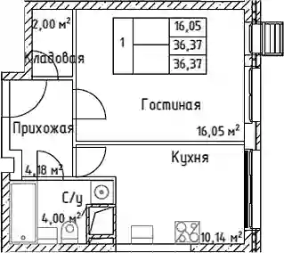 1-к.квартира, 36.37 м², 11 эт. в ЖК Экоград Новый Катуар Корпус 10