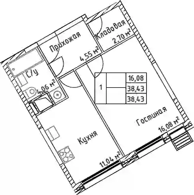 1-к.квартира, 38.43 м², 11 эт. в ЖК Экоград Новый Катуар Корпус 10