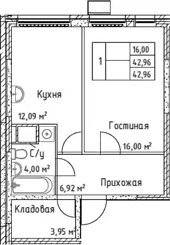 42.96 м2