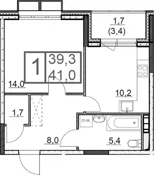 39.3 м2