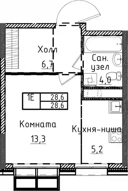 28.6 м2