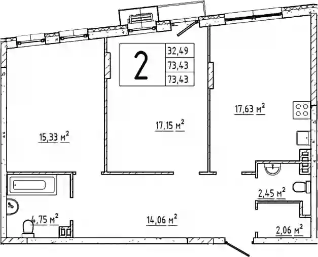 12 806 400 ₽2-к.квартира, 73.6 м², 2 эт.
