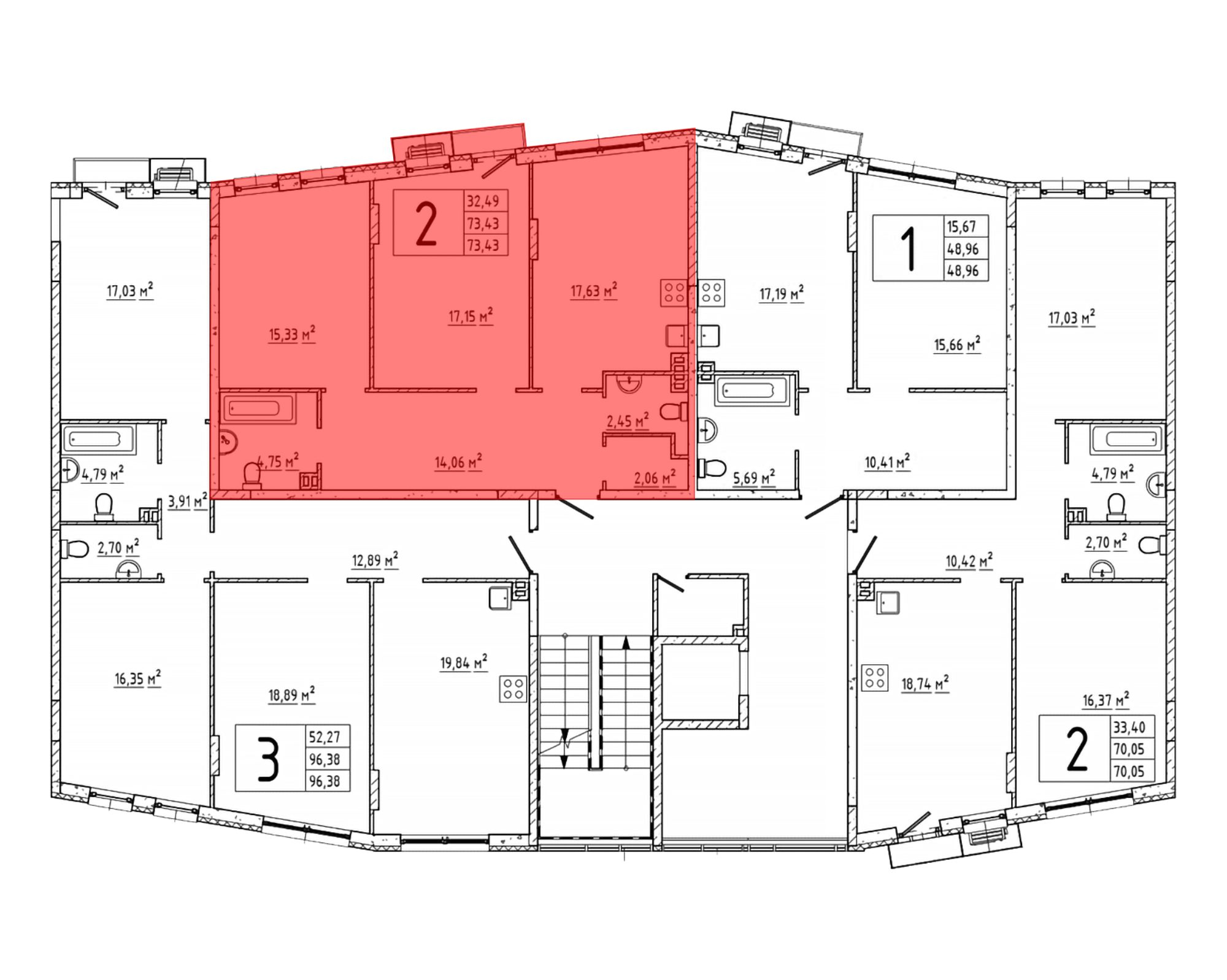 12 702 000 ₽2-к.квартира, 73 м², 3 эт.