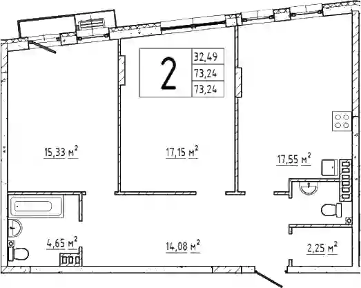 12 754 200 ₽2-к.квартира, 73.23 м², 3 эт.