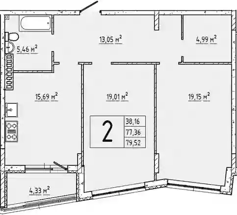 2-к.квартира, 77.33 м², 4 эт. в ЖК Эльйон Корпус 1