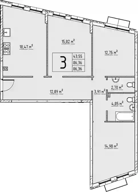 15 790 000 ₽3-к.квартира, 86.4 м², 1 эт.