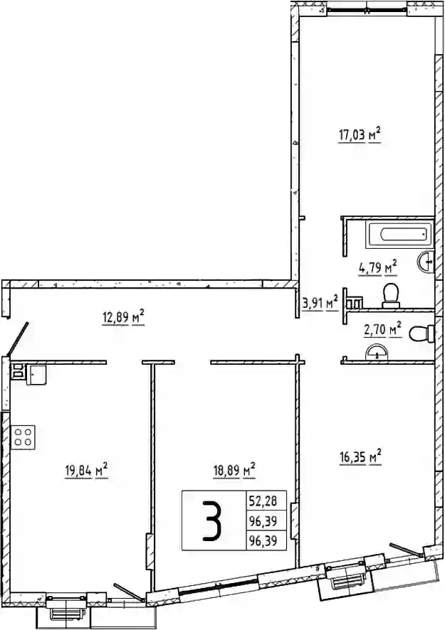 3-к.квартира, 96.39 м², 2 эт. в ЖК Эльйон Корпус 1
