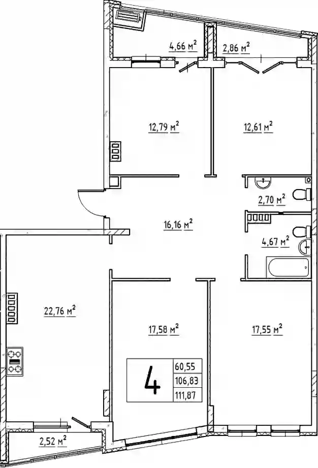 18 463 500 ₽4-к.квартира, 107.09 м², 4 эт.