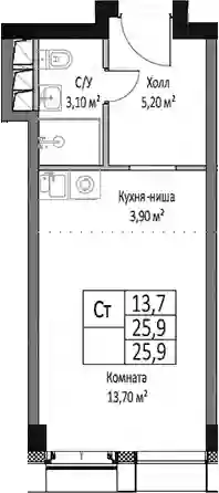 13 822 900 ₽Студия, 24.5 м², 15 эт.