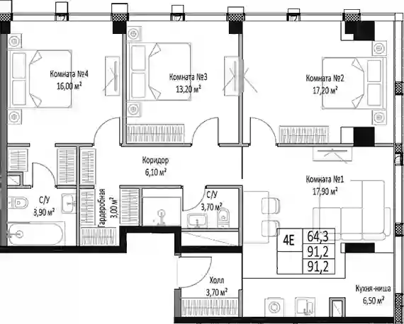 В проекте представлено множество планировочных решений — от студий до просторных 4х-комнатных квартир с балконами и террасами. Все лоты сдаются с базовой отделкой, высотой потолков 3 метра и панорамными окнами.