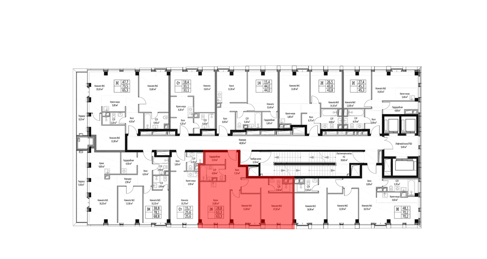 2-к.квартира, 63.3 м², 15 эт. в ЖК Emotion Корпус 4