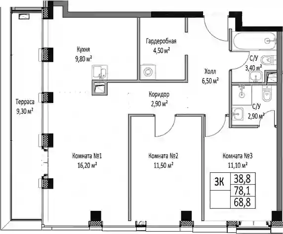 41 811 084 ₽3-к.квартира, 68.38 м², 2 эт.