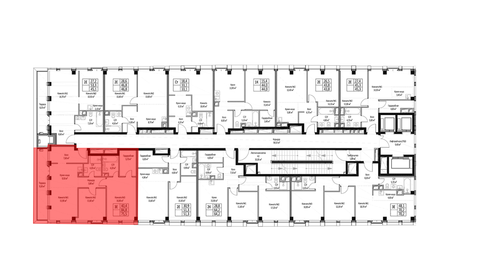 В проекте представлено множество планировочных решений — от студий до просторных 4х-комнатных квартир с балконами и террасами. Все лоты сдаются с базовой отделкой, высотой потолков 3 метра и панорамными окнами.
